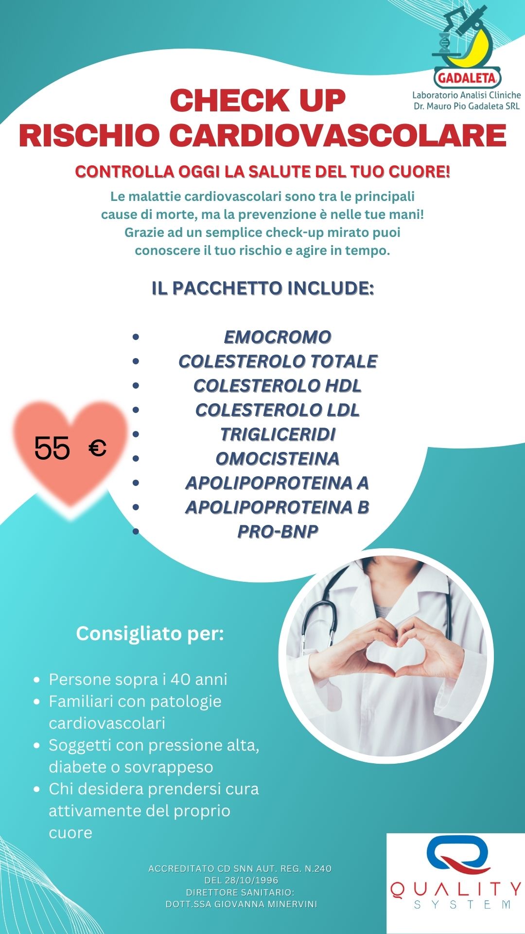 Il laboratorio Mauro Gadaleta SRL offre diverse tipologie di checkup che consentono di monitorare la tua salute.