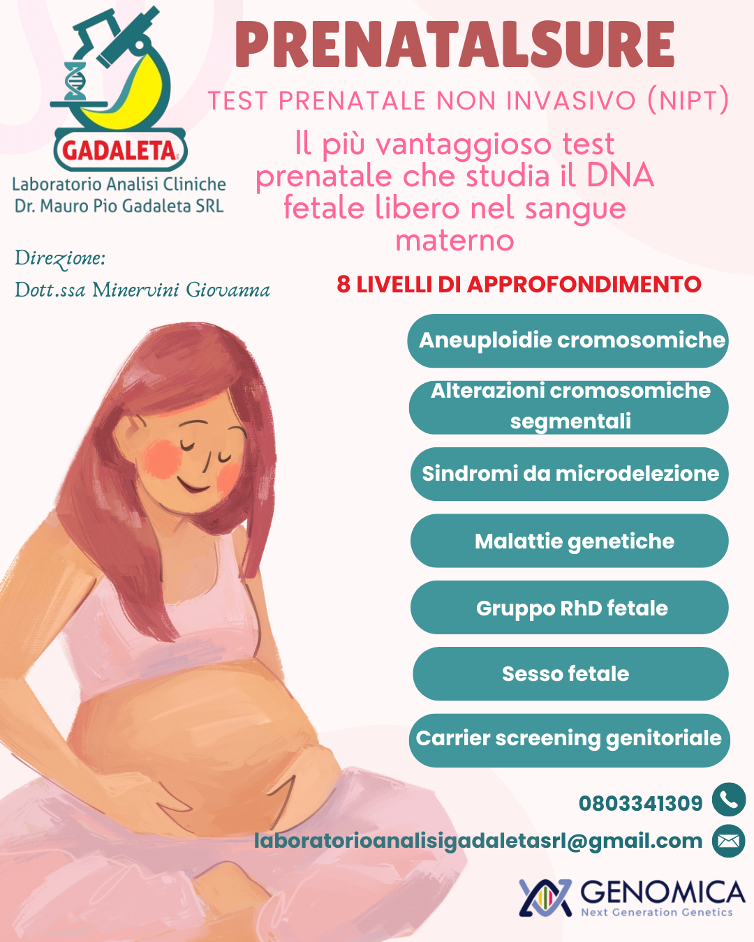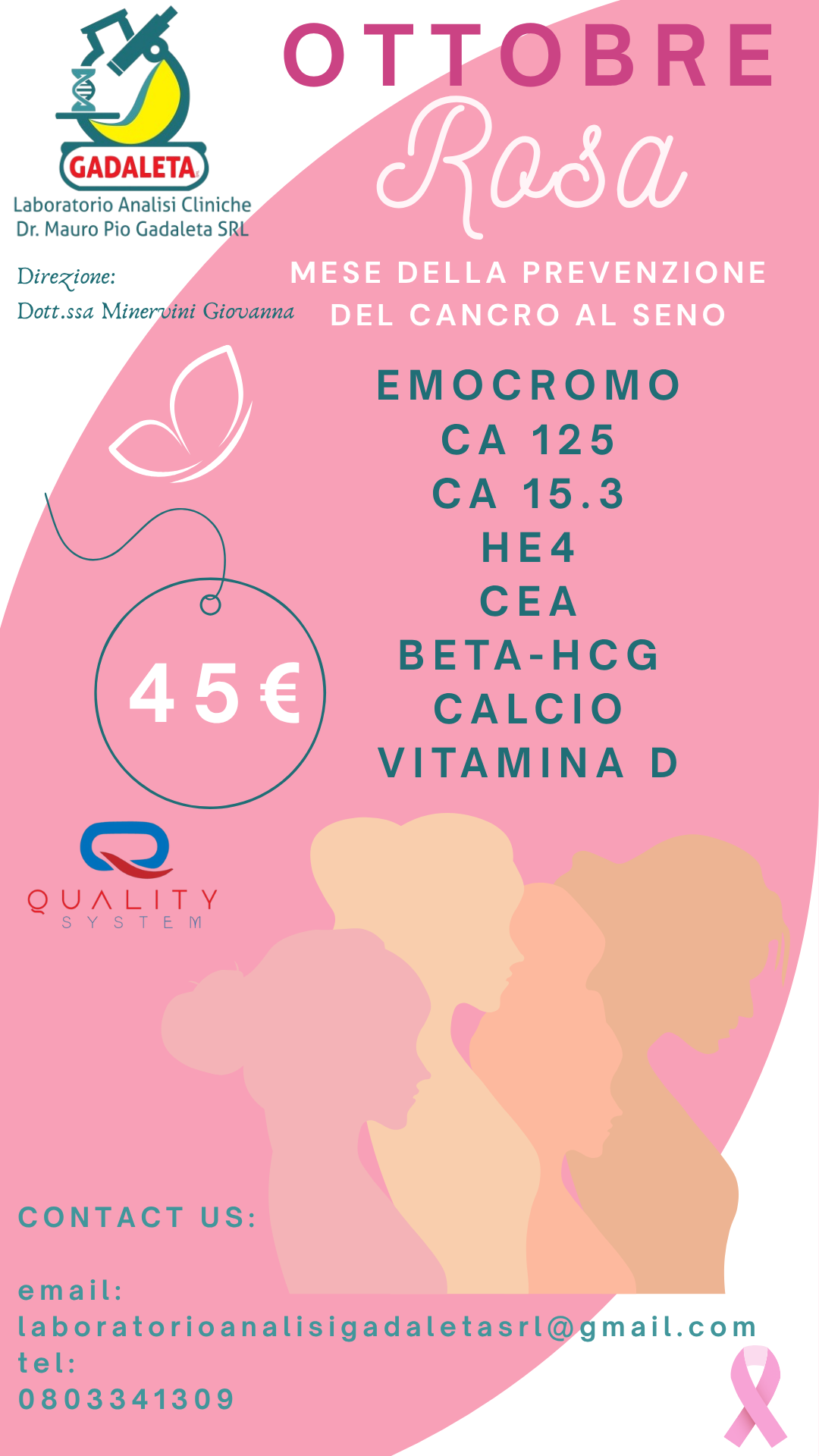 Il "Laboratorio Mauro Gadaleta SRL" è un laboratorio d’analisi chimico–cliniche, tossicologiche, radioimmunologiche, microbiologiche convenzionato con il Sistema Sanitario Nazionale. Oltre alle analisi in convenzione ASL, il laboratorio si occupa anche di medicina del lavoro, biologia molecolare, intolleranze alimentari, infertilità di coppia e test prematrimoniali, celiachia.